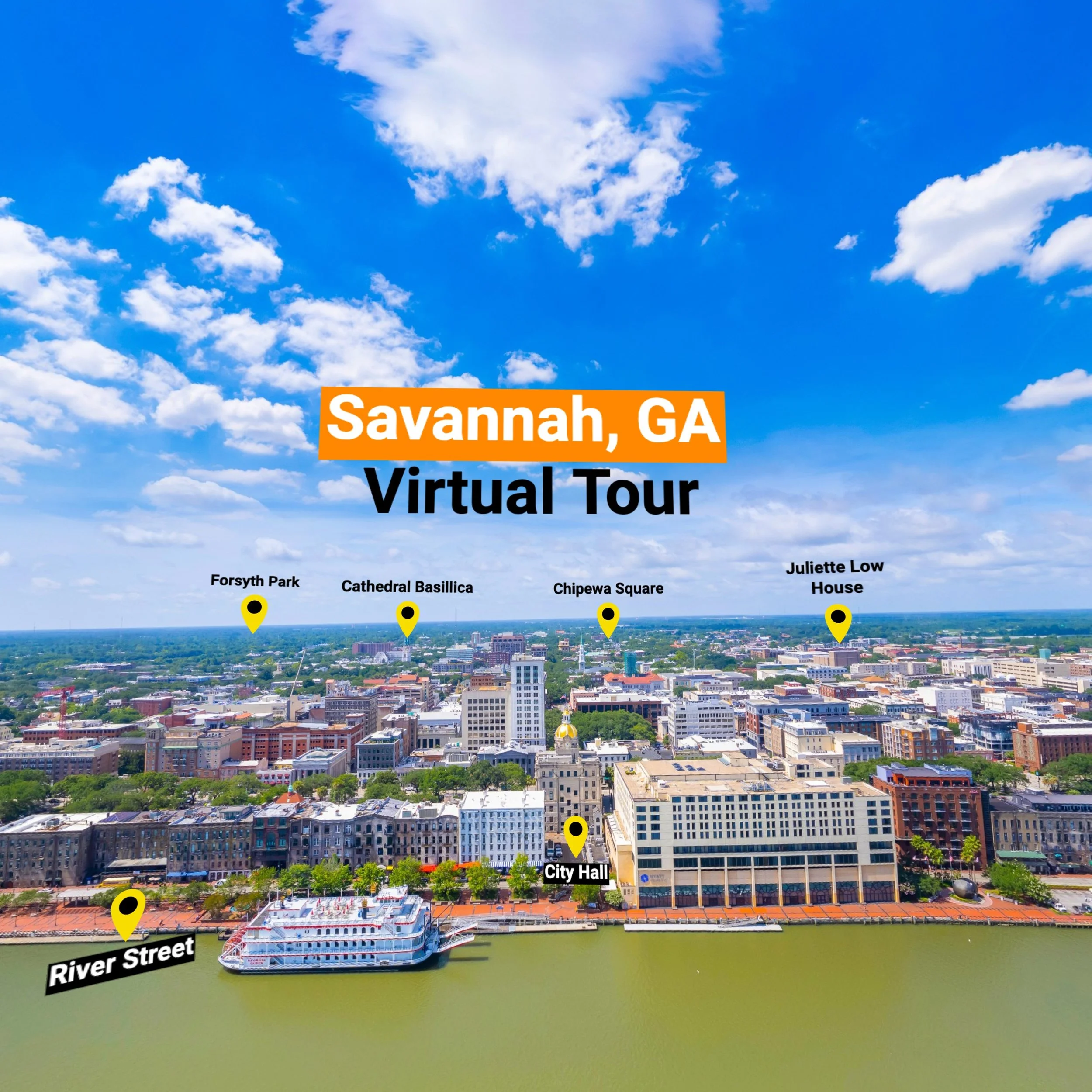 Click on the yellow pinpoint icons to select the virtual tour.